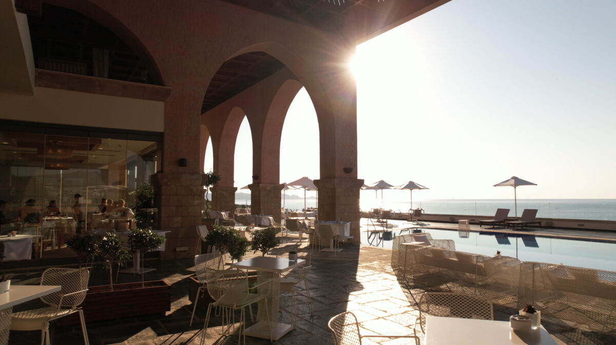 Breakfast is an event in itself. It’s served à la carte but with the abundance of a buffet. There’s thick Greek yogurt drizzled with local honey, fresh fruit that actually tastes like it grew in the sun, flaky pastries still warm from the oven, and eggs cooked any way you want. Plates come out beautifully presented but never pretentious, simple food done properly.